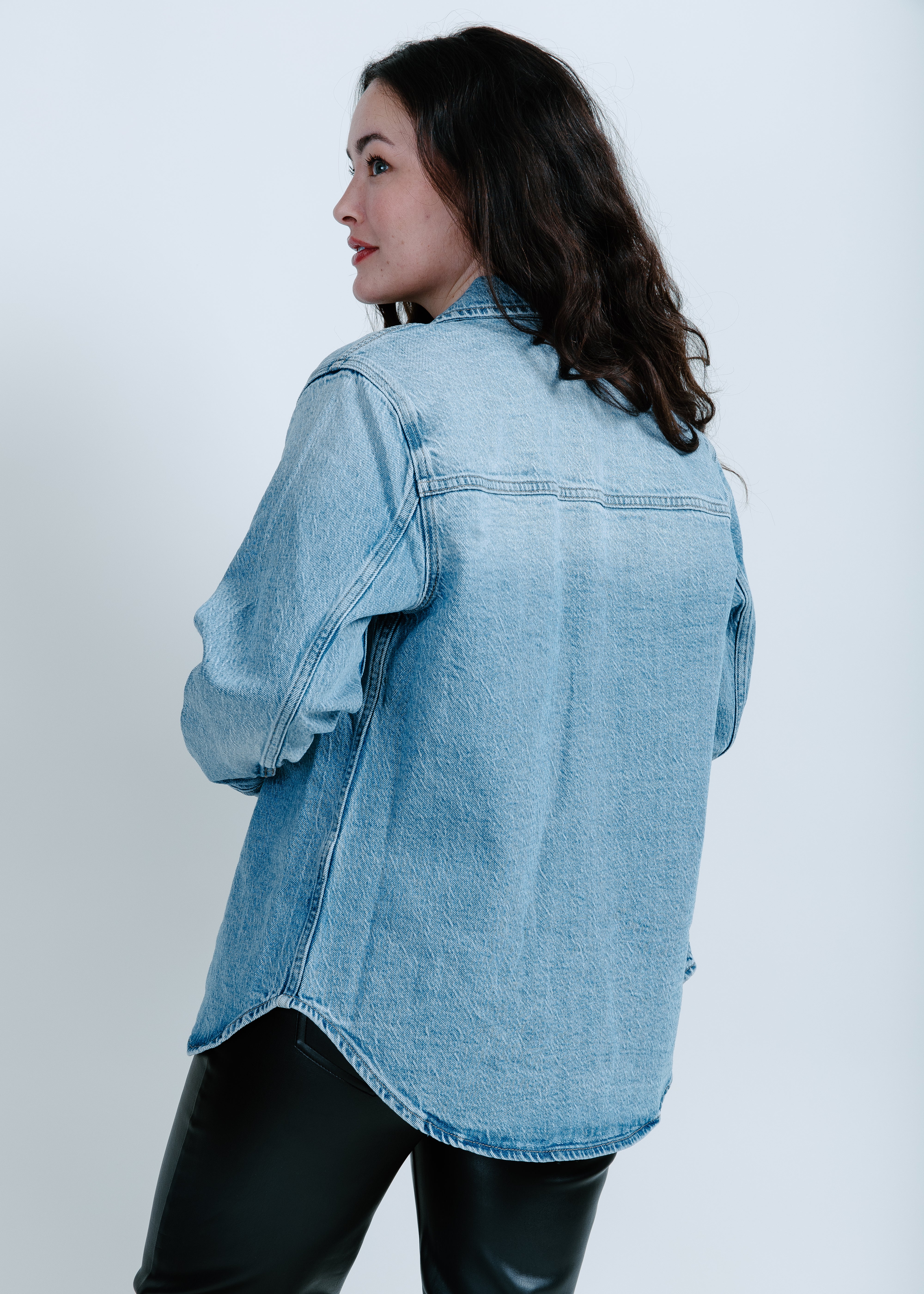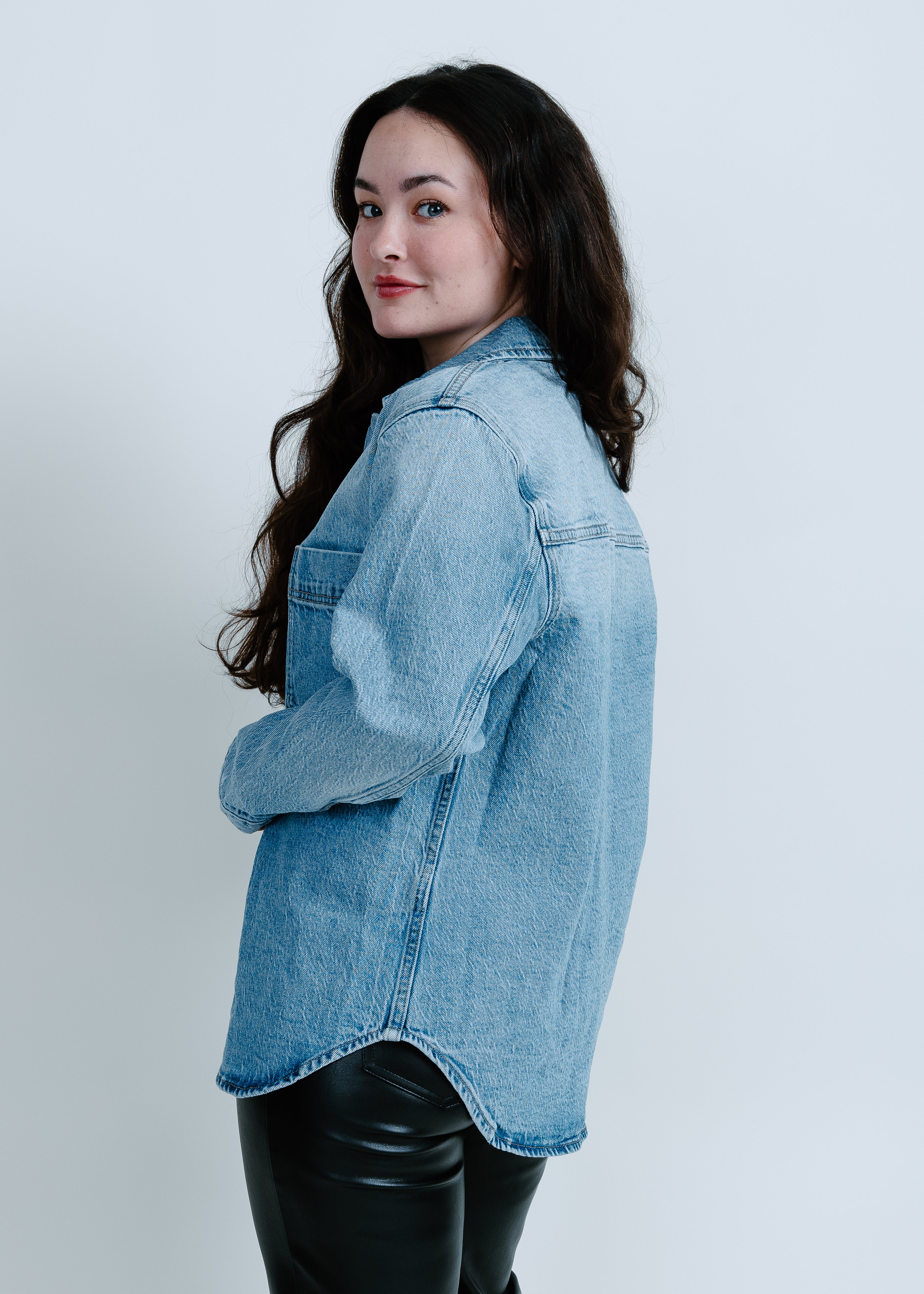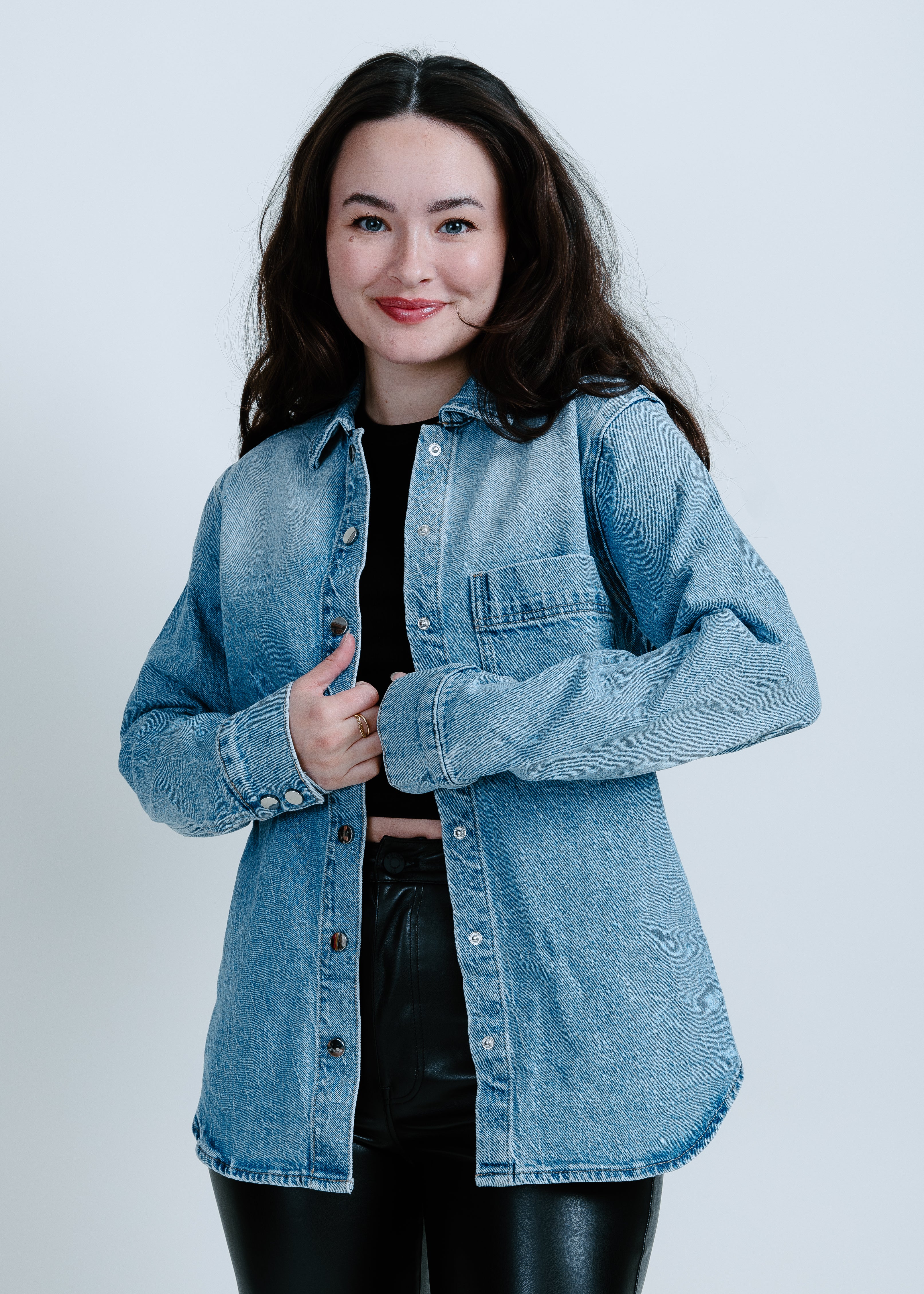 Made with high-quality and featuring a stylish silver button-up detail, you'll love how versatile and durable this Liv Long Sleeve Denim Shirt is, especially paired easily over our Ellen Tank in Black.
