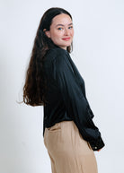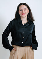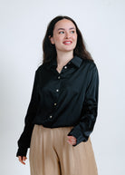 Introducing the Hunter Satin Bodysuit, a classy black one for layering up for winter days. With its charming button-up detail and collar, not only will you look professional in this bodysuit, but you'll also be the life of the party!