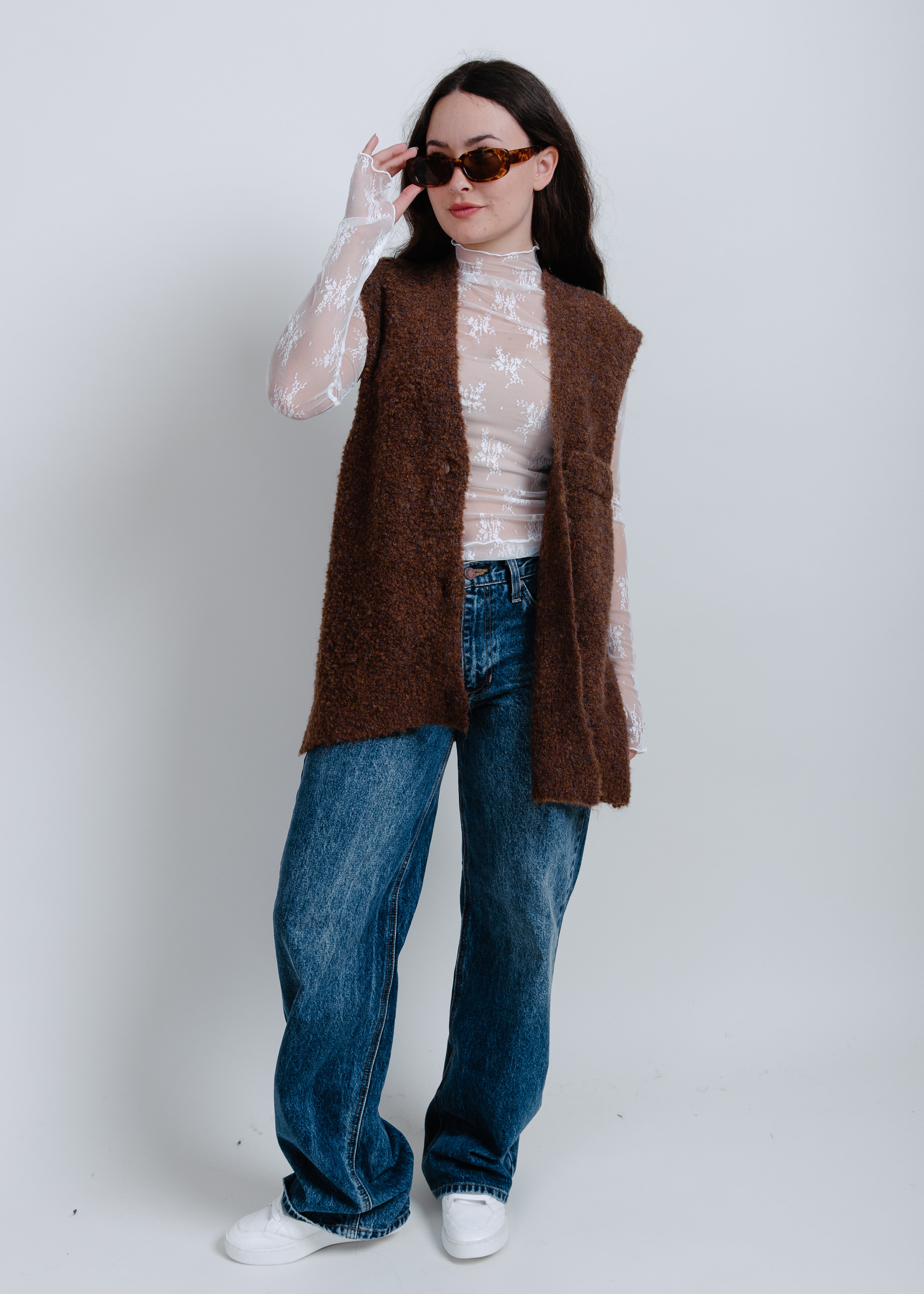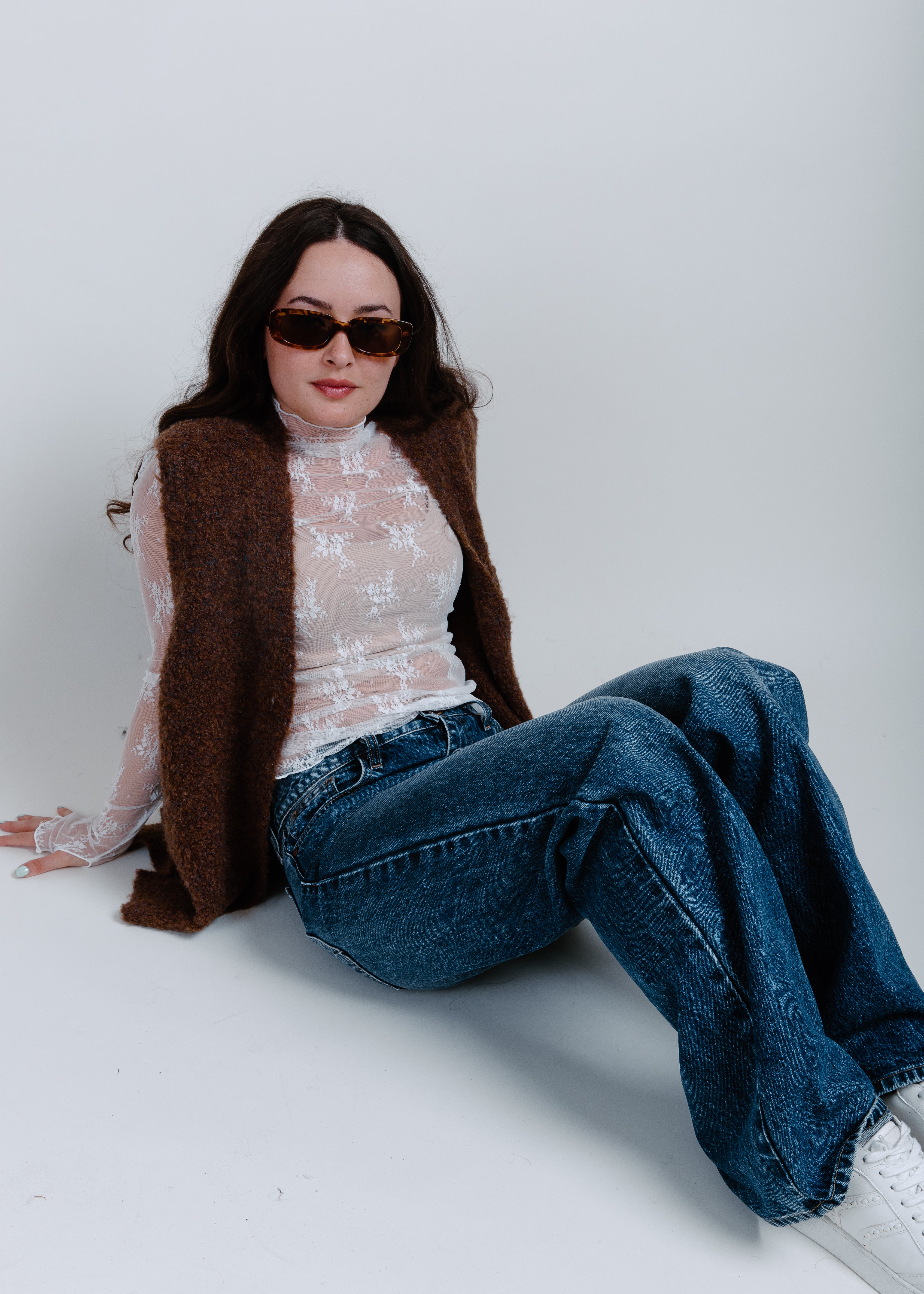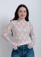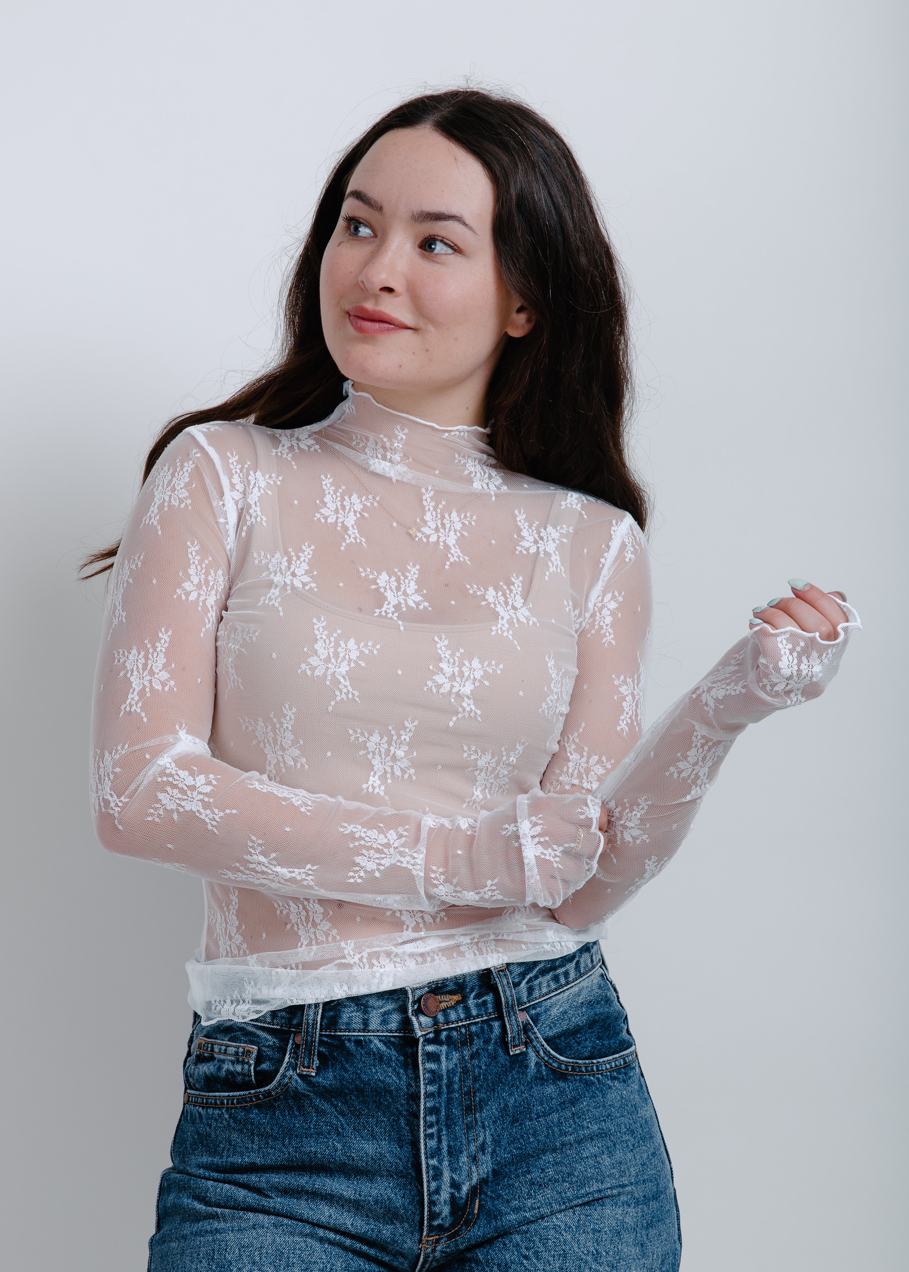 Add a pop of color and boldness to your wardrobe with our Liana Lace Top in White. This top features delicate floral stitching, and its sheer detail makes a statement in a fun easy-to-layering style. We especially love this paired with our Teddy Oversized Sweater Vest.
