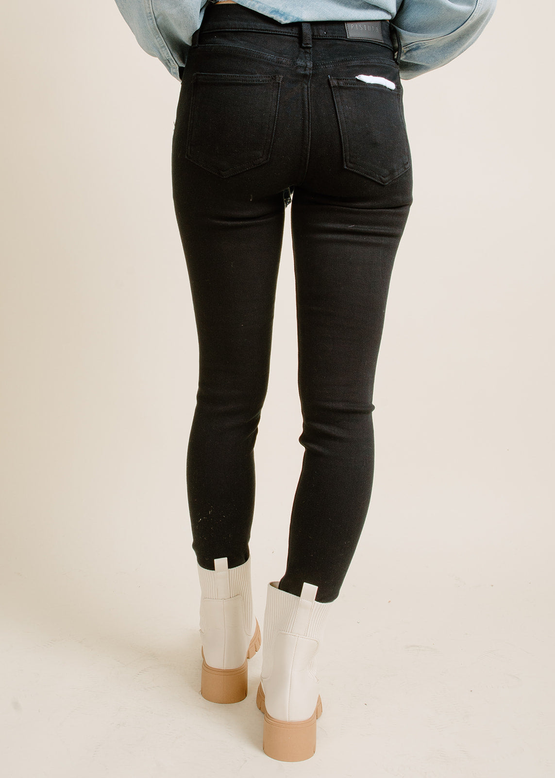 The Audrey is our mid-rise super skinny jean — it forms to your figure and fits like a glove. This second-skin style comes in a vintage inspired dark wash. This is a must-have in your winter wardrobe.