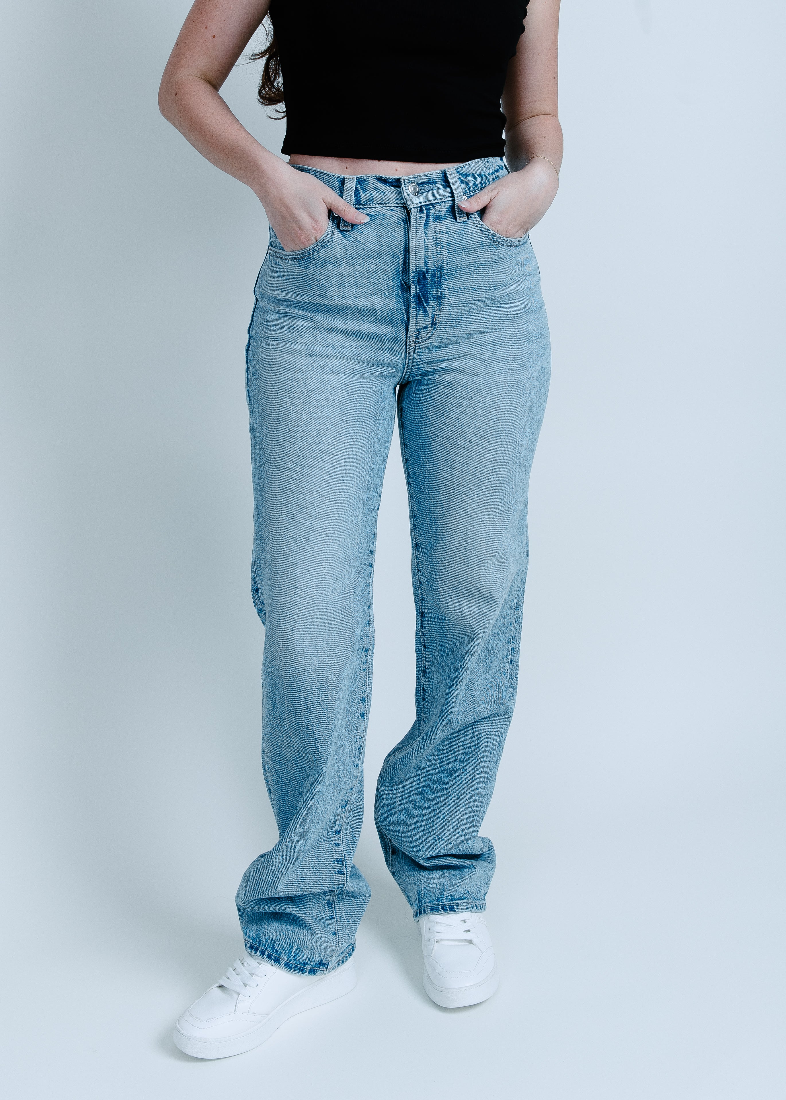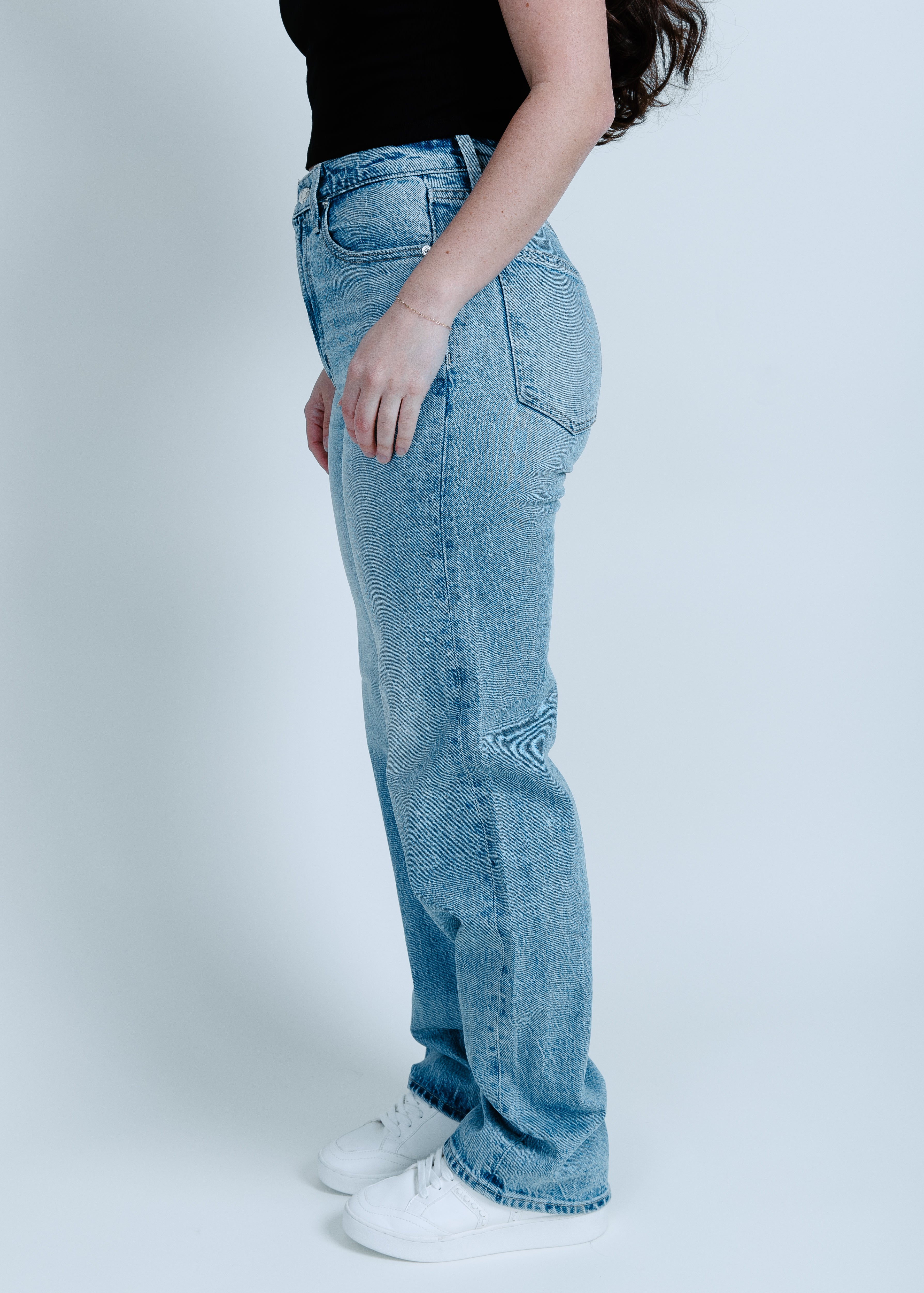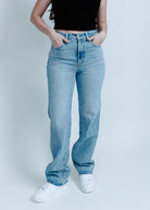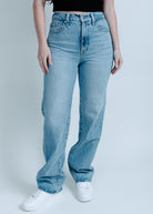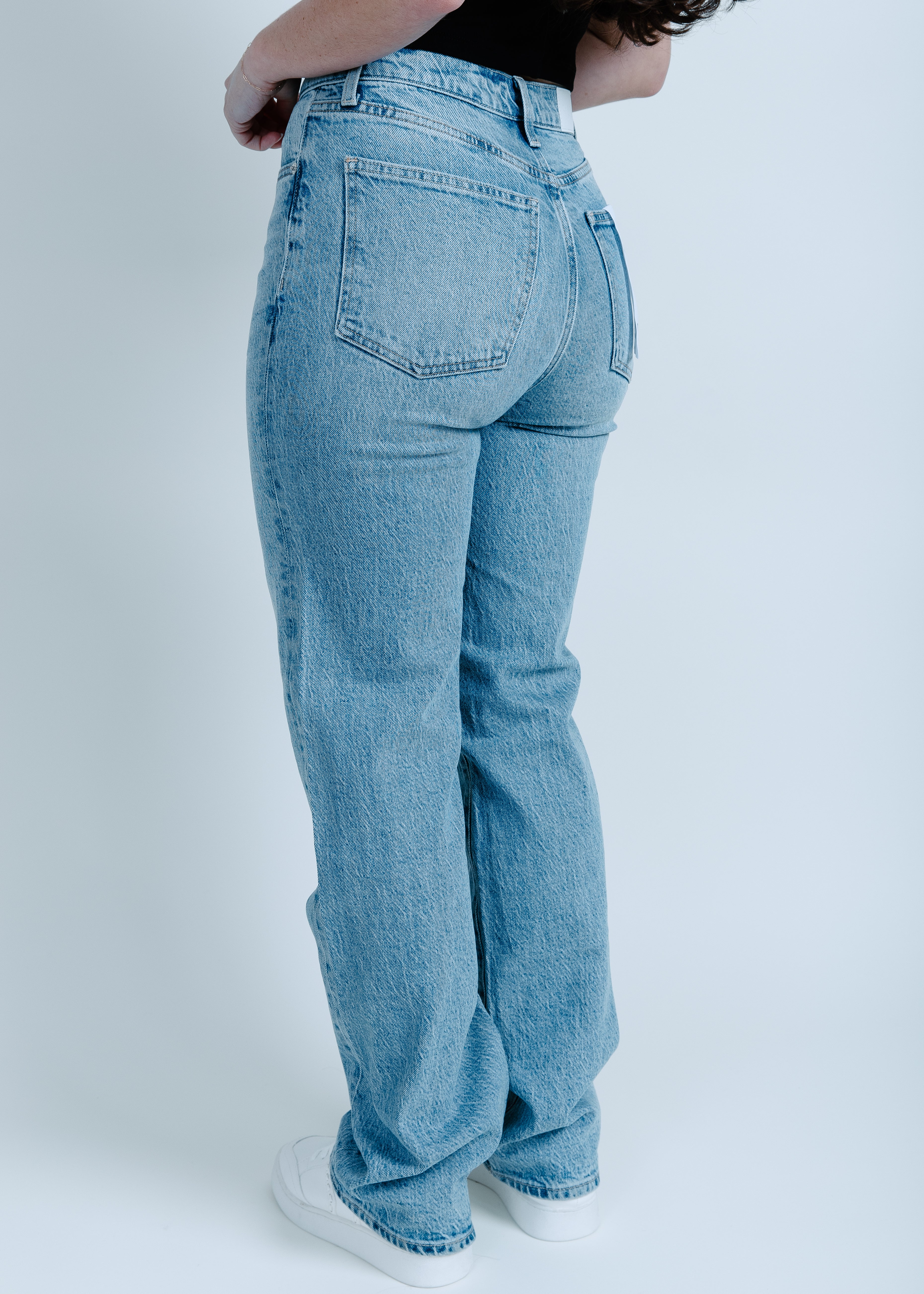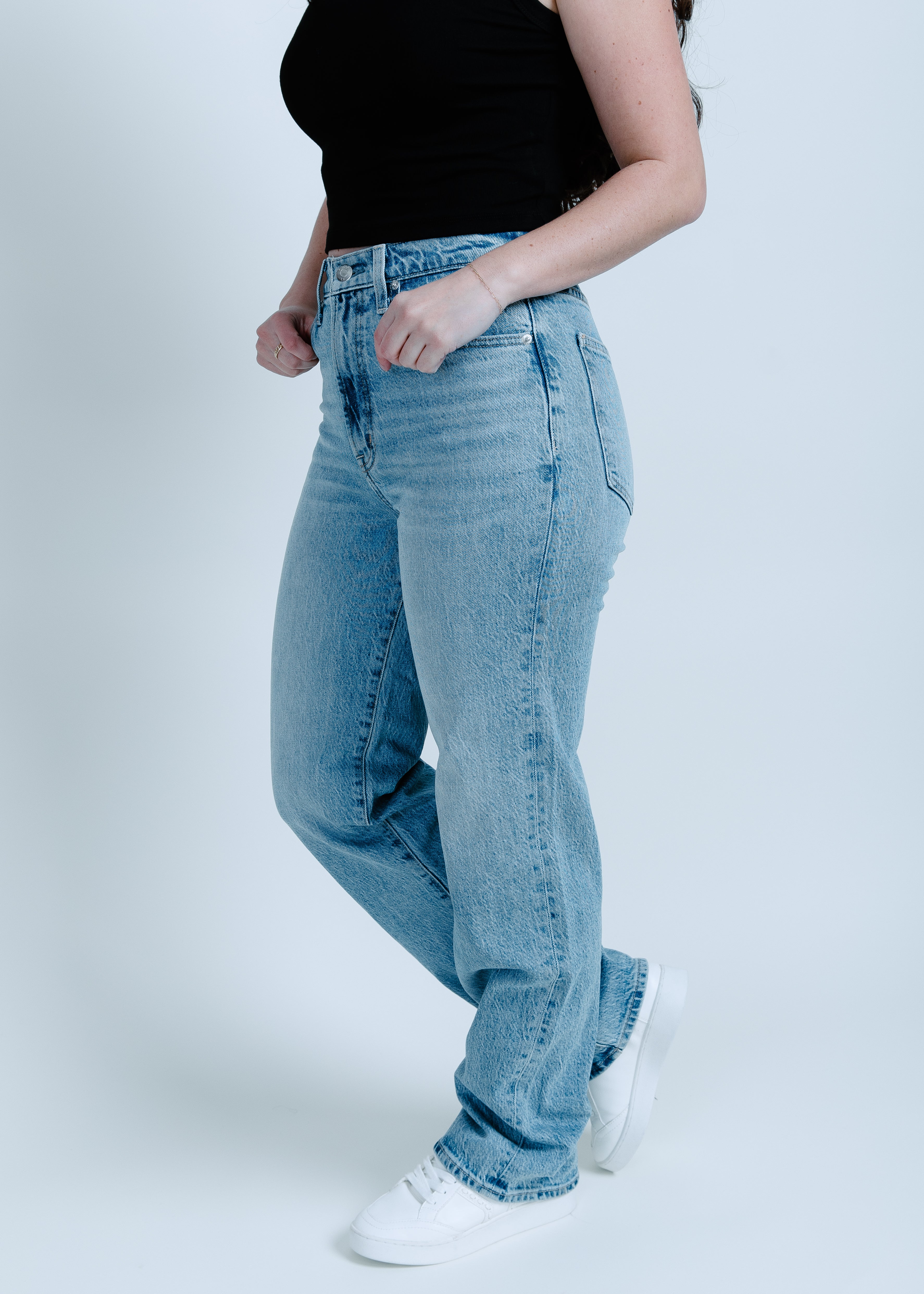 A classic pair of high-rise straight blue jeans that we love for everyday wear.