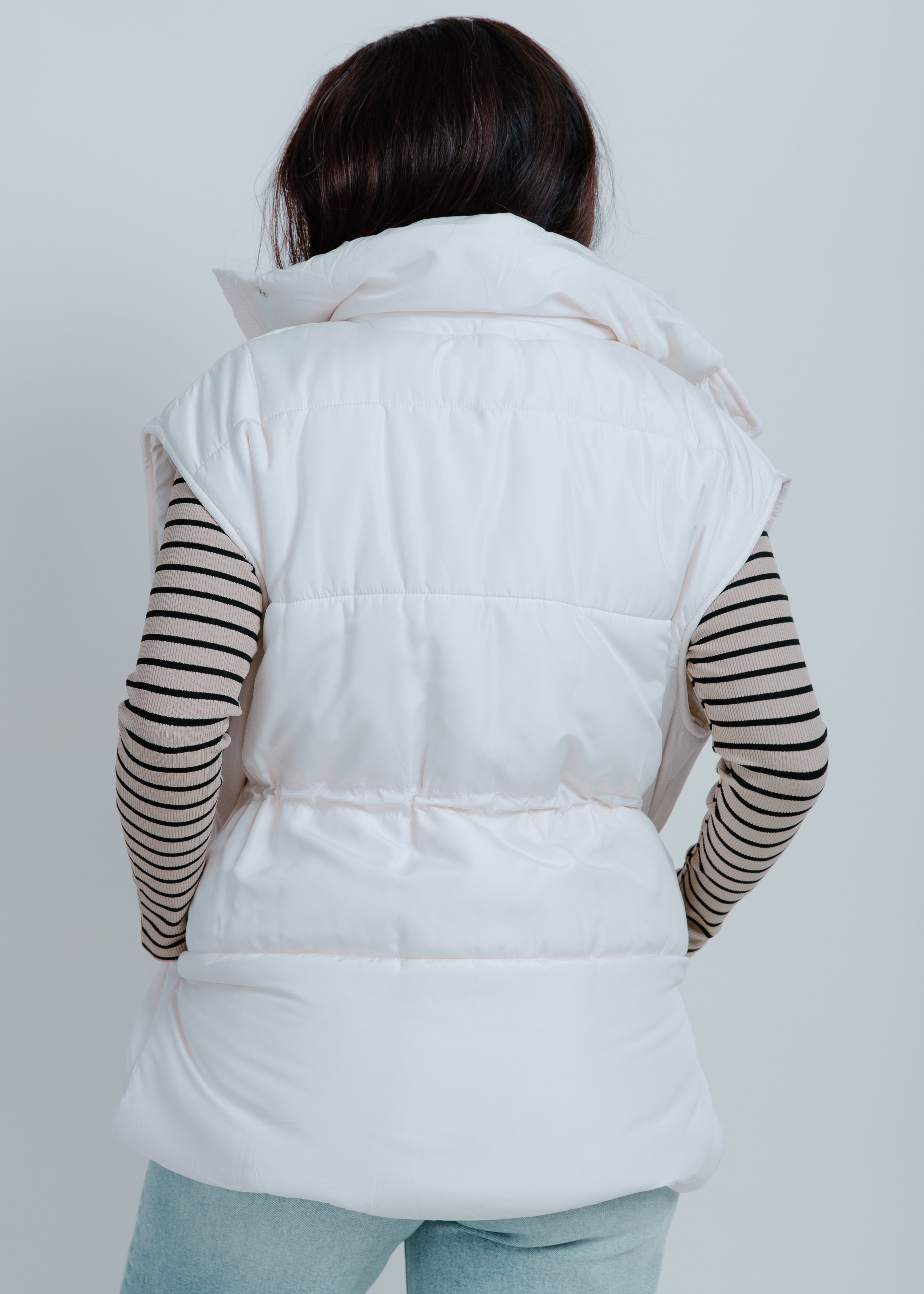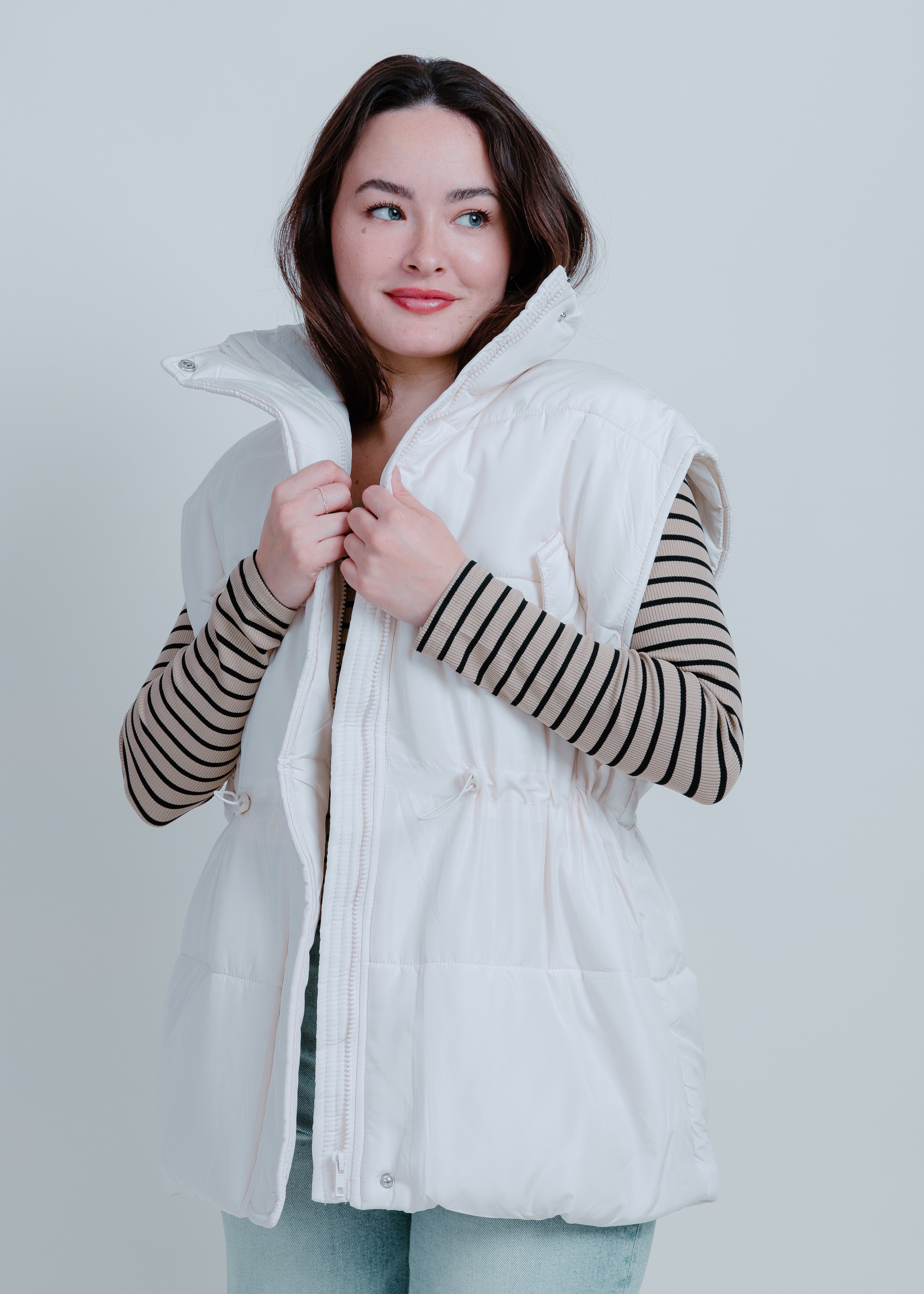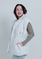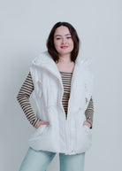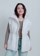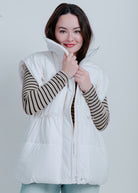 Stay warm and stylish with our Demi Oversized Puffer Vest! This white vest features a zip-up detail and convenient pockets, making it both fashionable and functional. Layer it over any outfit for a cozy and chic look.