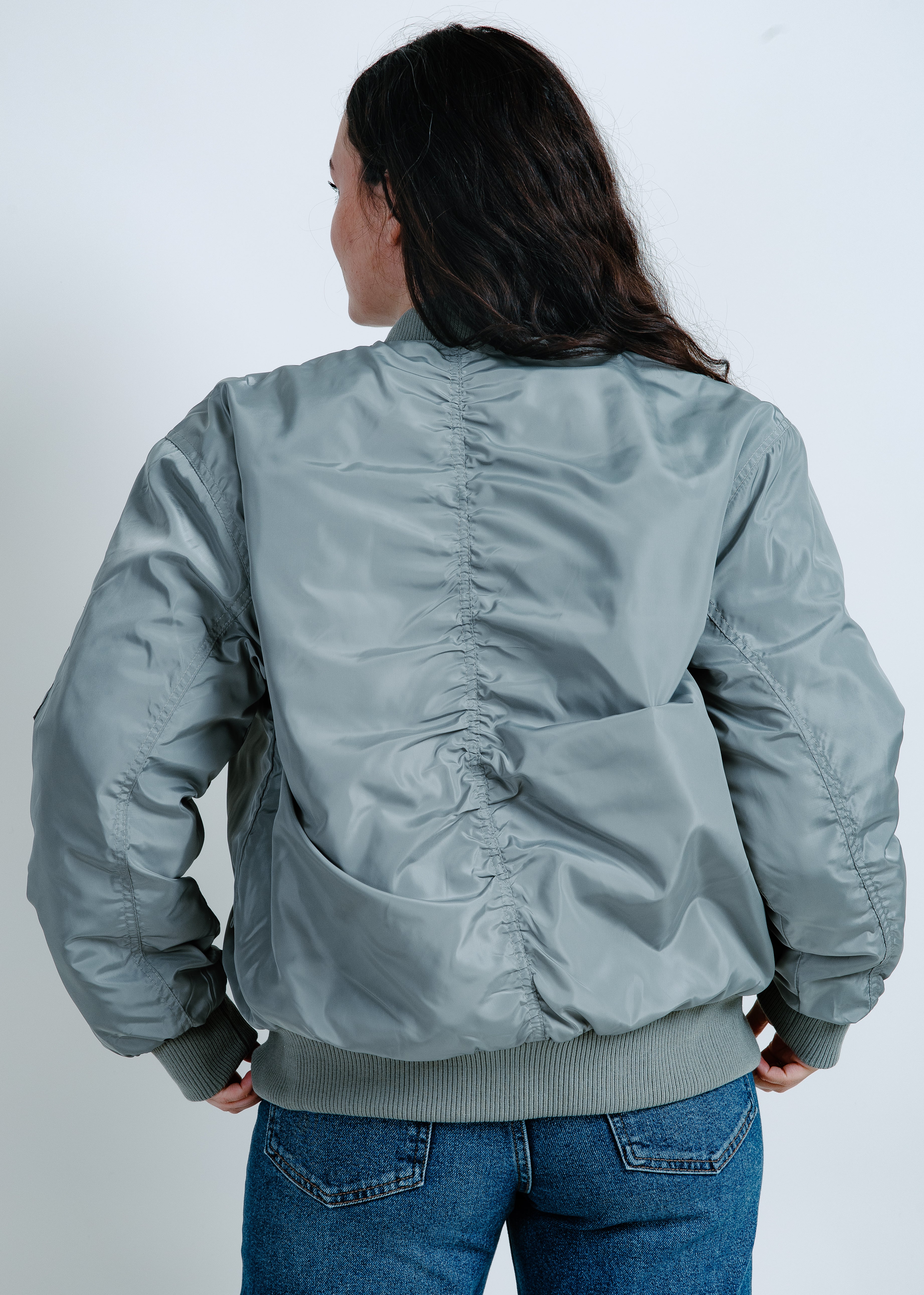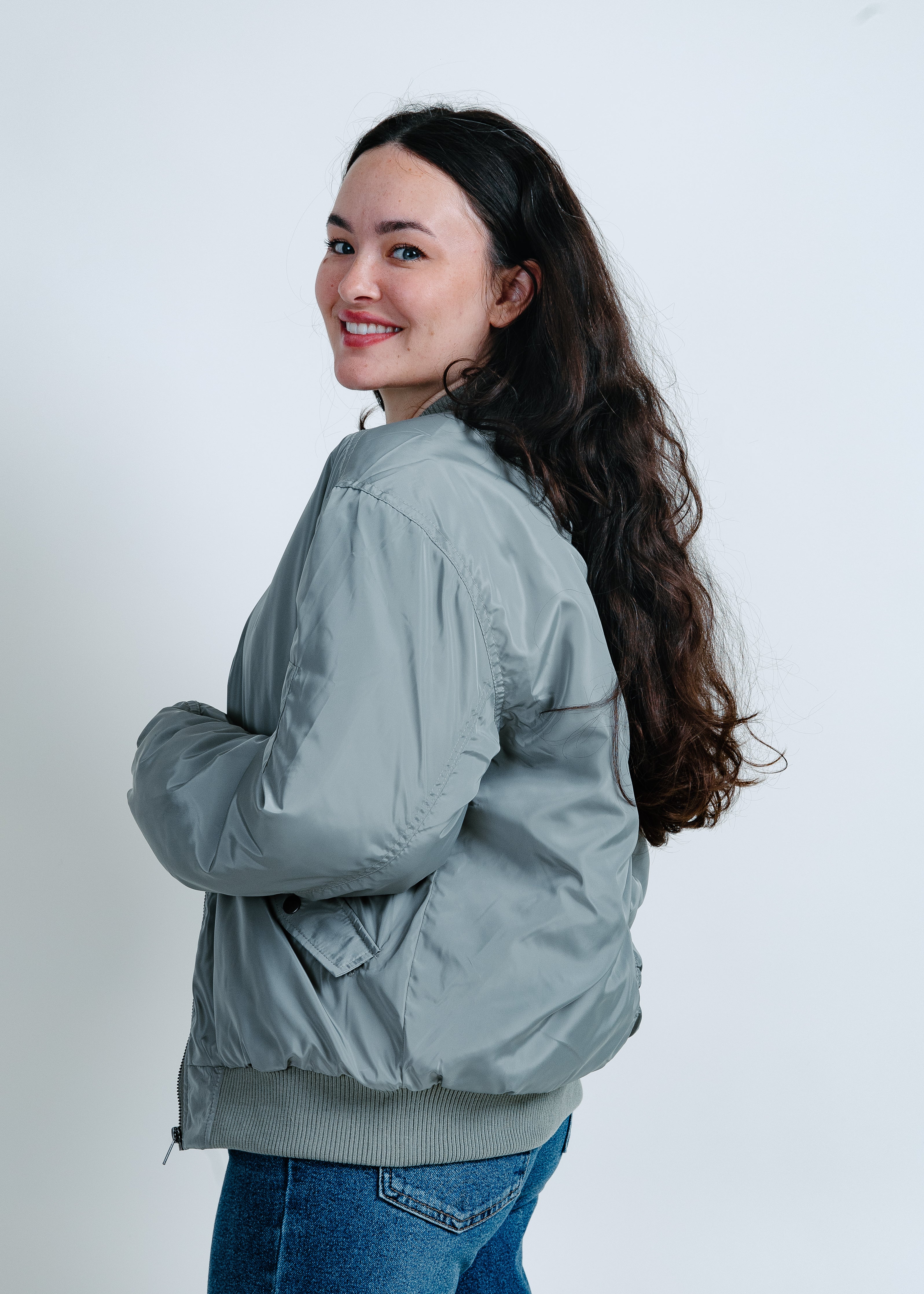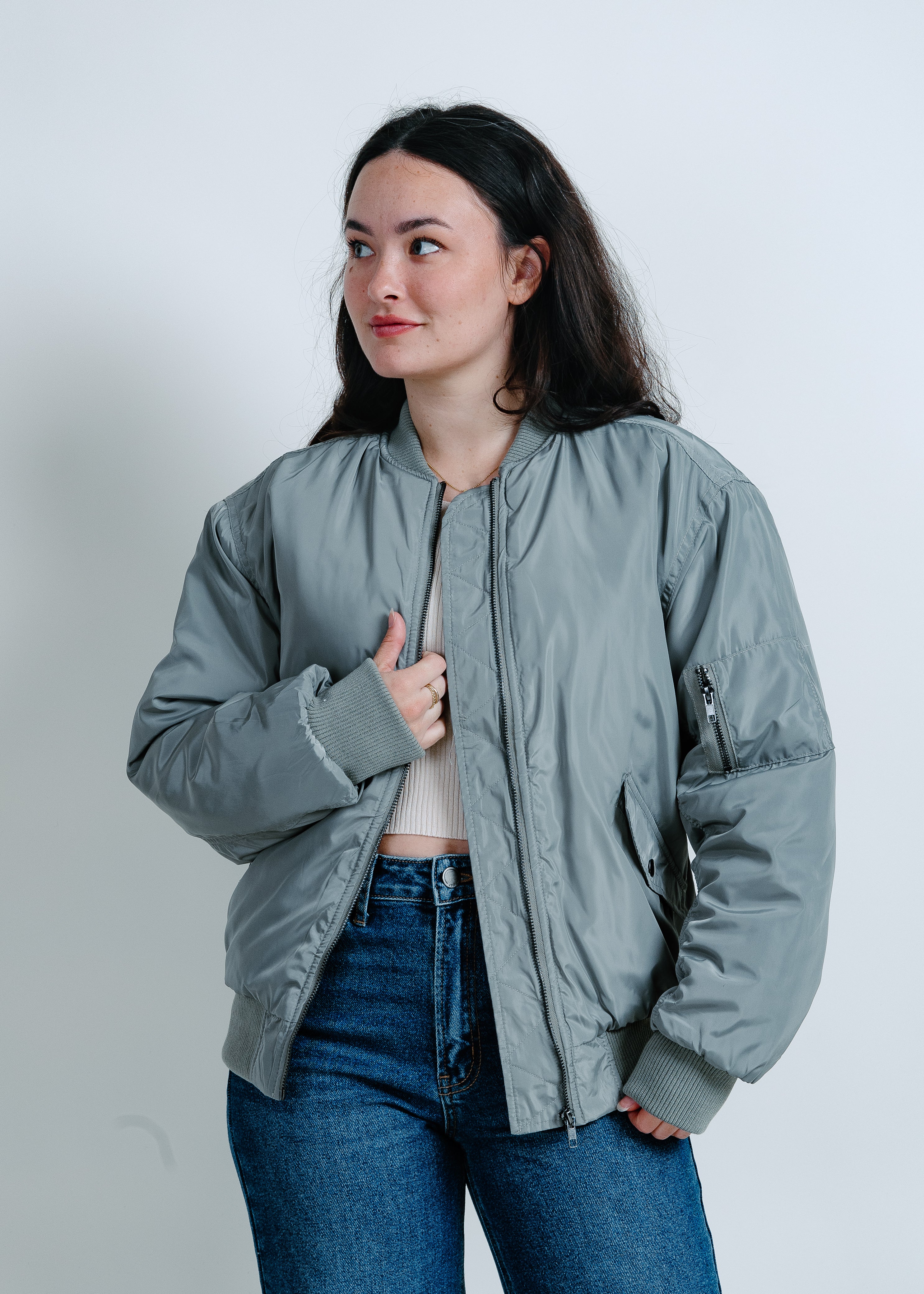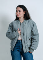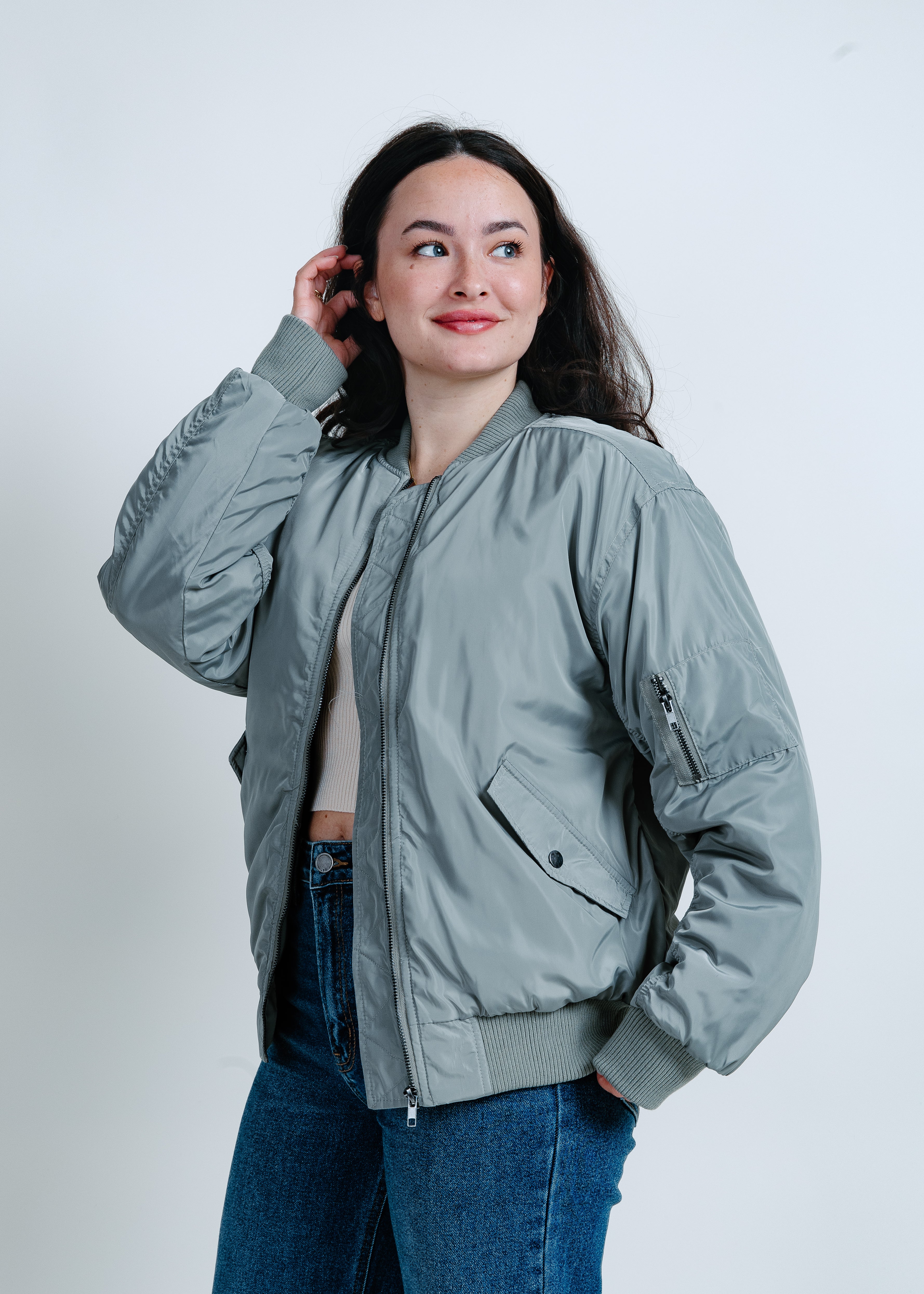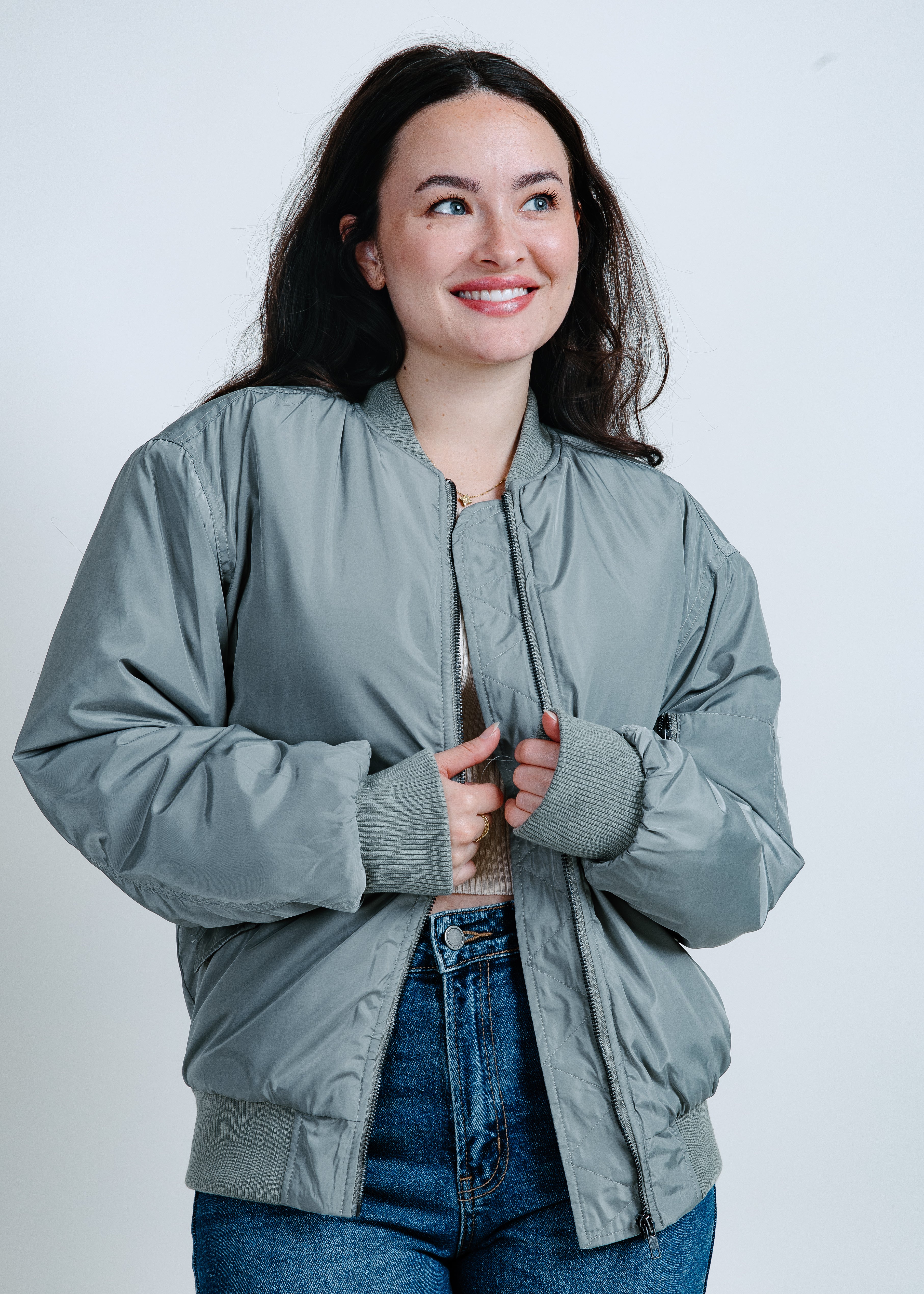 Stay cool in our City Girl Ruched Bomber Jacket! This comfy jacket combines the trendy bomber look in an olive color. Plus, it's got handy pockets for all your essentials. Available in both Cream and Olive!