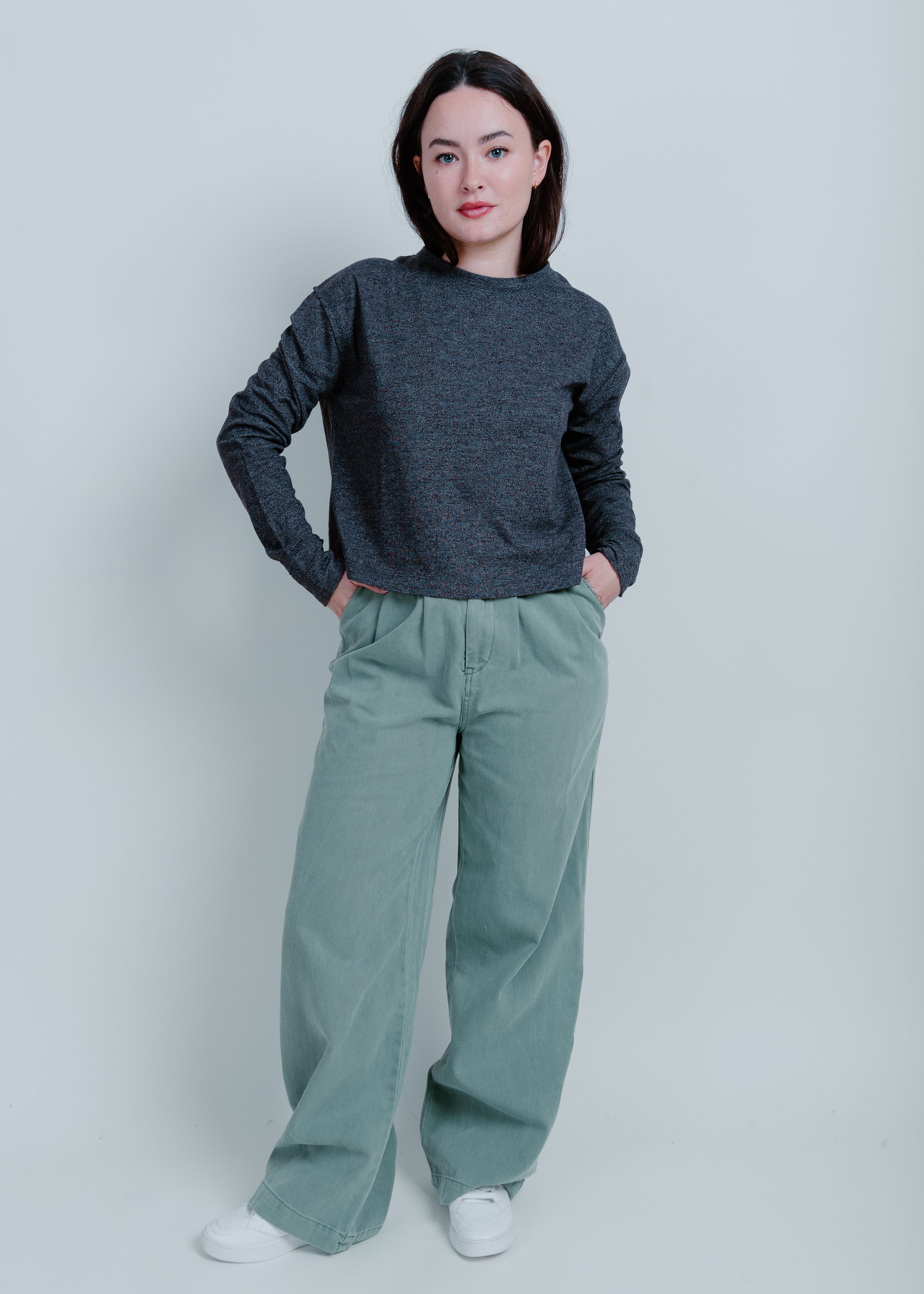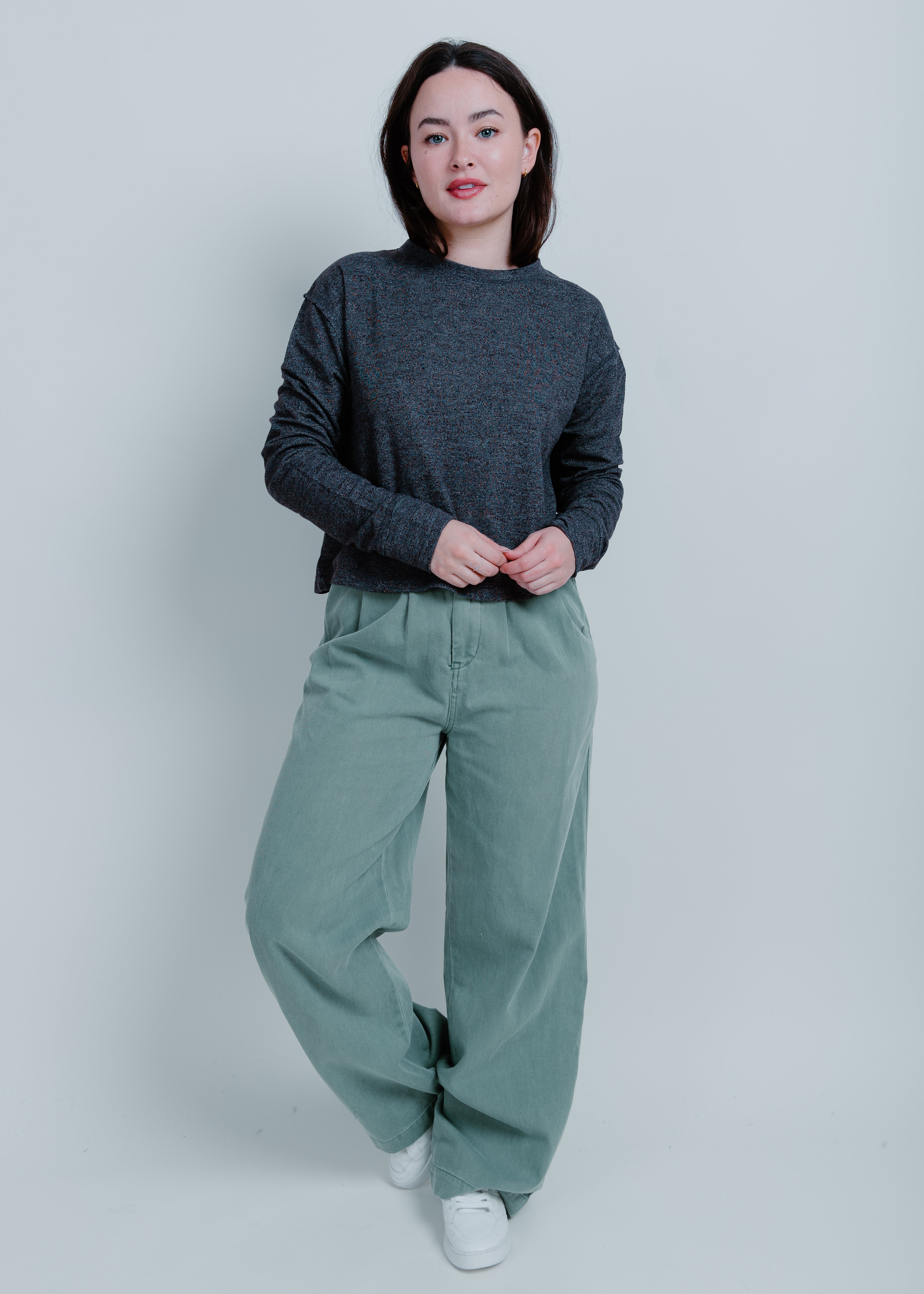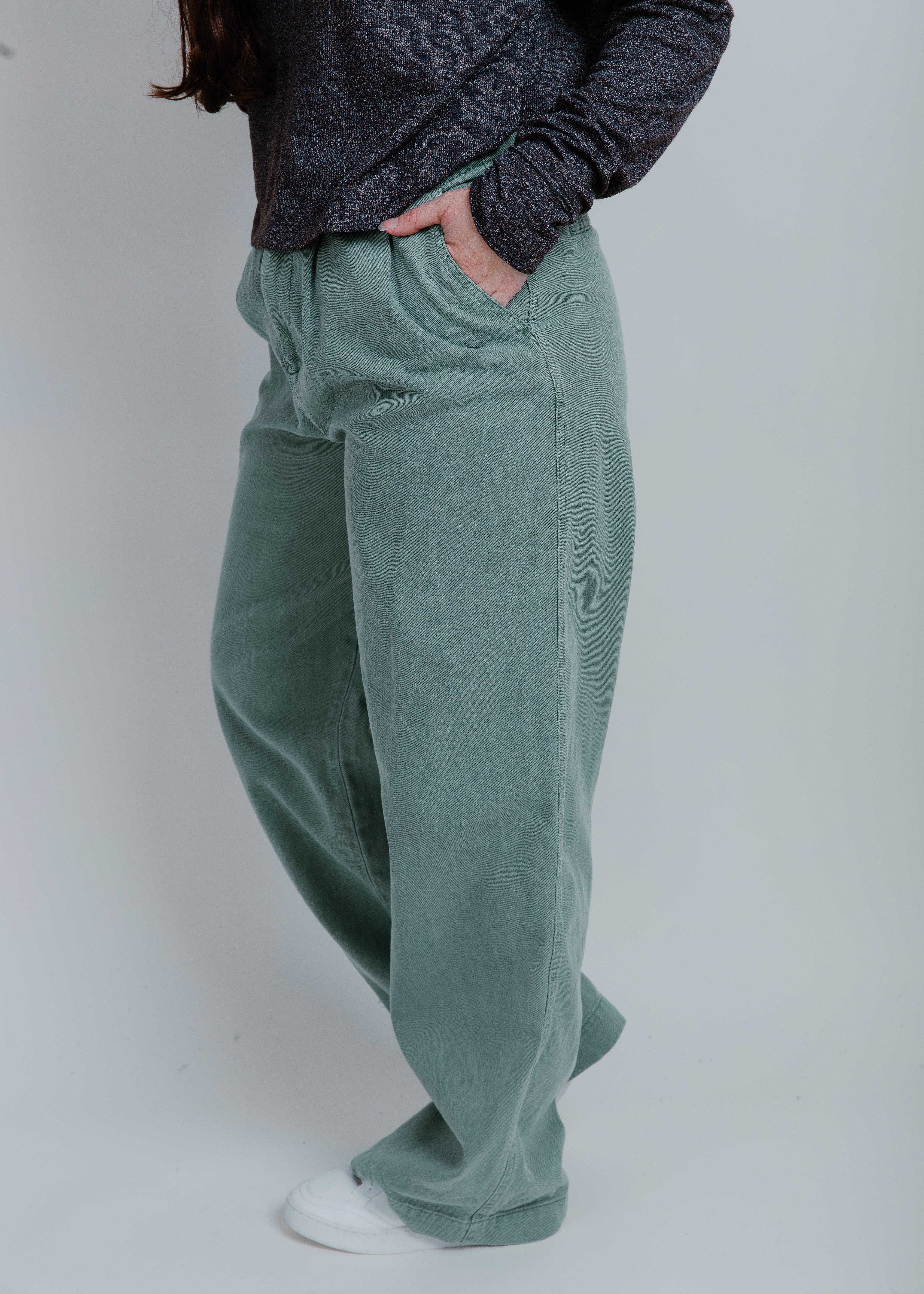 The soft green hue of our Austin Wide Leg Pants is a favorite for both professional and casual looks, ensuring comfort all day long. No need to sacrifice style for comfort, these pants have you covered.