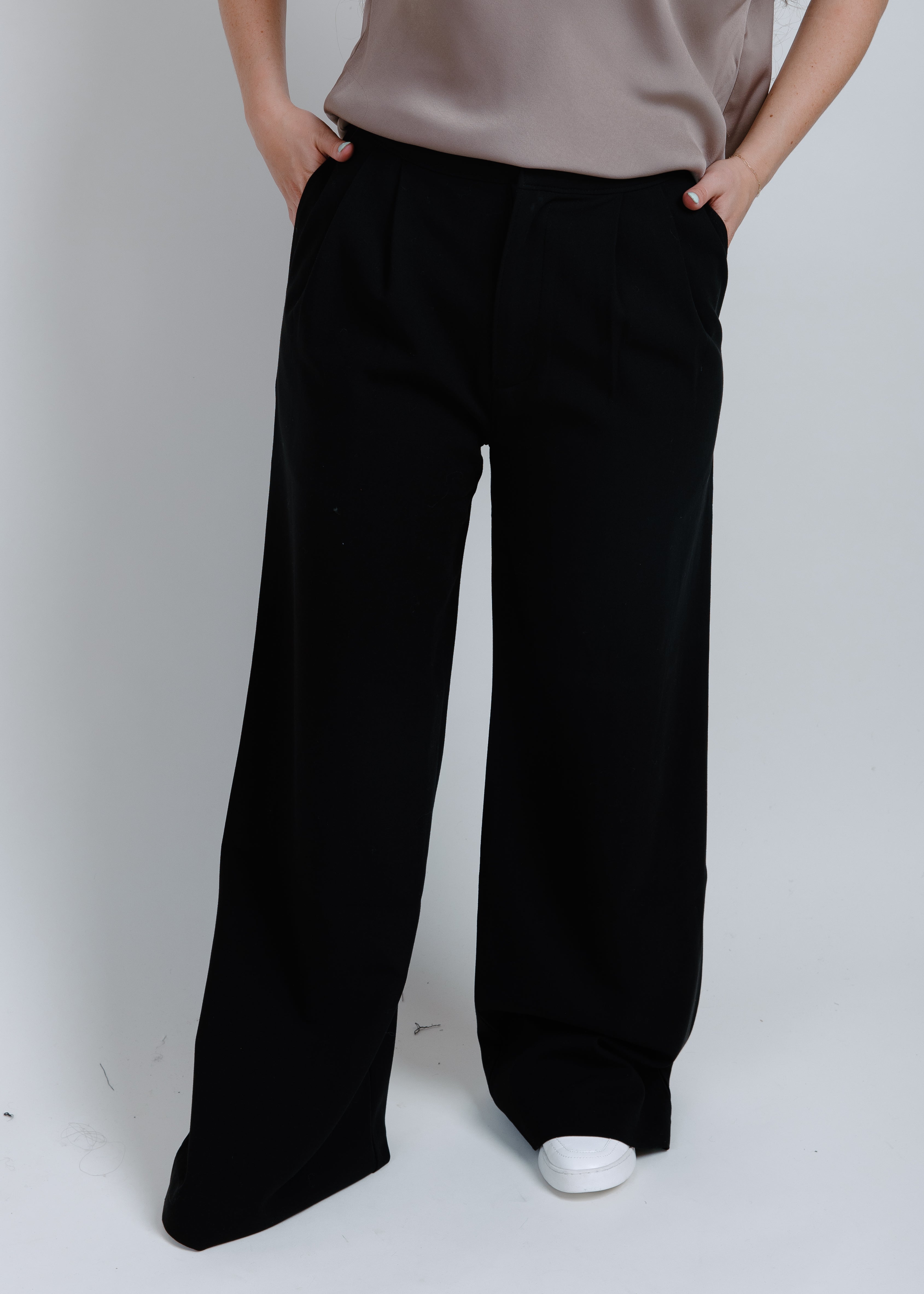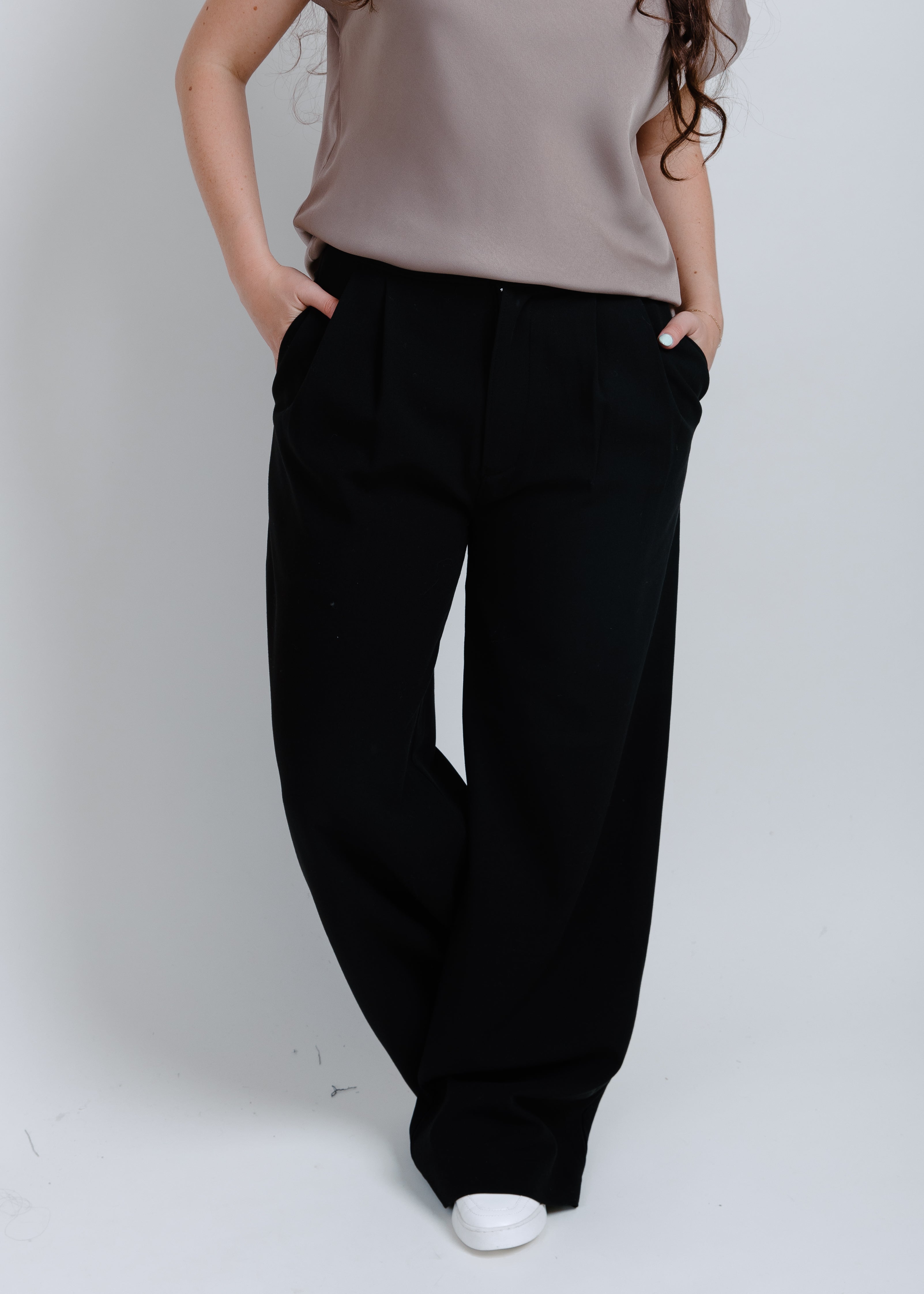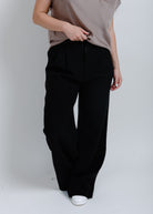 Up your style game with Sina Pleated Trousers. With its black pleated design and pockets, these trousers are versatile for both work and casual wear. A timeless, classy choice for those "I have nothing to wear" days!