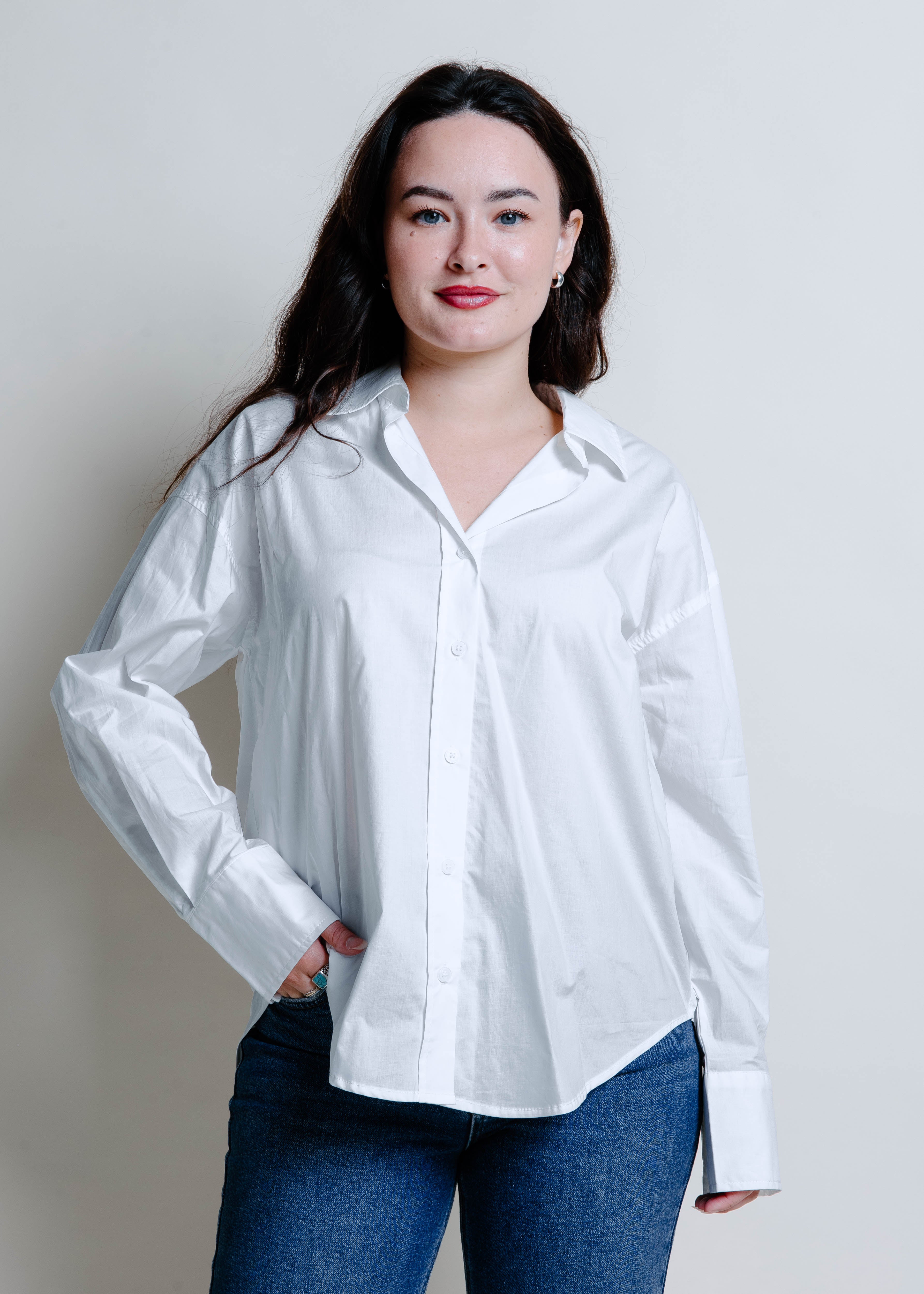 Who doesn’t love a crisp white blouse? This one is a great fit. Not too long, not too blousy; just right!!
