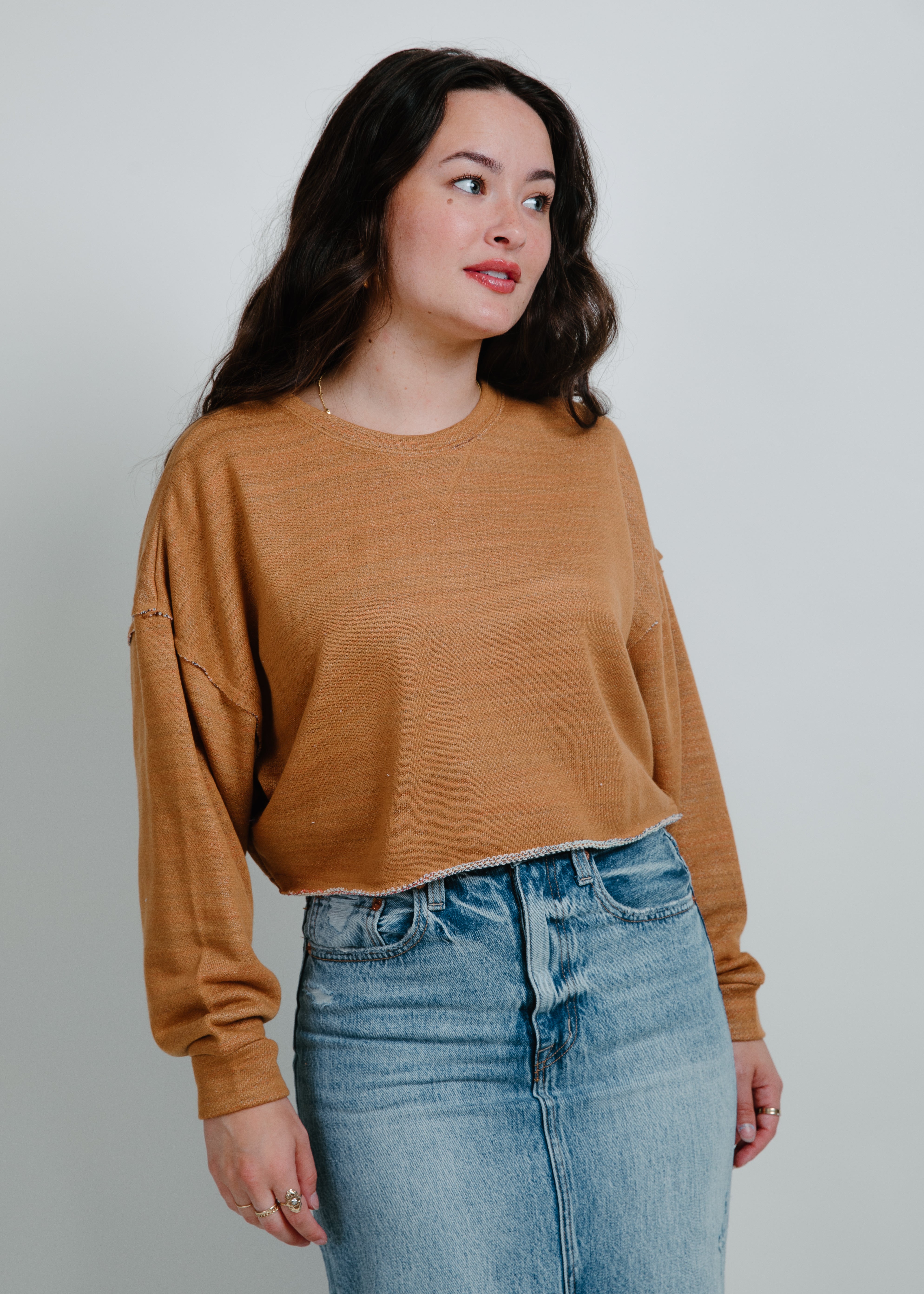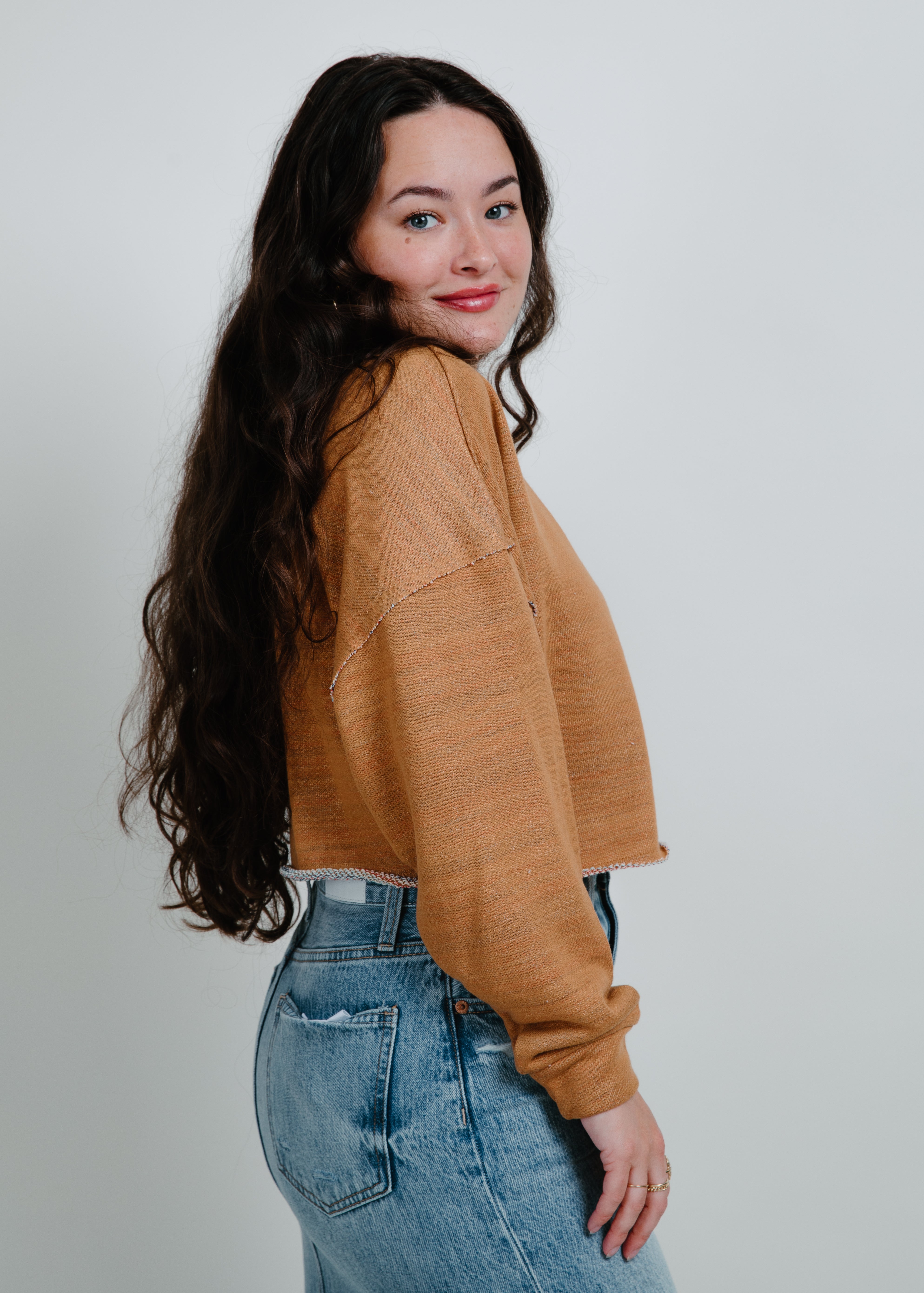 Running Errands Cropped Sweatshirt - Brown Sugar