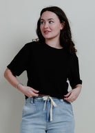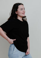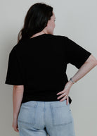 Introducing the Out The Door Tee in Black - crafted from lightweight, breathable fabric. This classic tee is a must-have for any wardrobe and for sunny days. It's a staple!